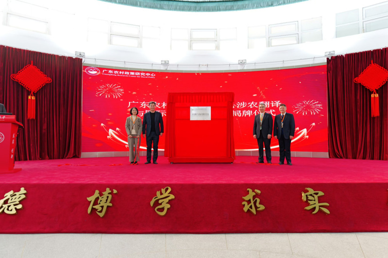 2025年1月20日,在广东农村政策研究中心成立20周年庆祝大会上,广东农村政策研究中心涉农翻译与国际传播研究基地揭牌仪式隆重举行。该研究基地由华南农业大学外国语学院与广东农村政策研究中心联合共建,旨在充分发挥外国语学院的语言优势与广东农村政策研究中心在涉农领域的研究专长,推动涉农政策、技术与文化的国际传播,为乡村振兴战略的实施提供语言服务与支持,同时为涉农翻译人才的培养搭建高水平平台。